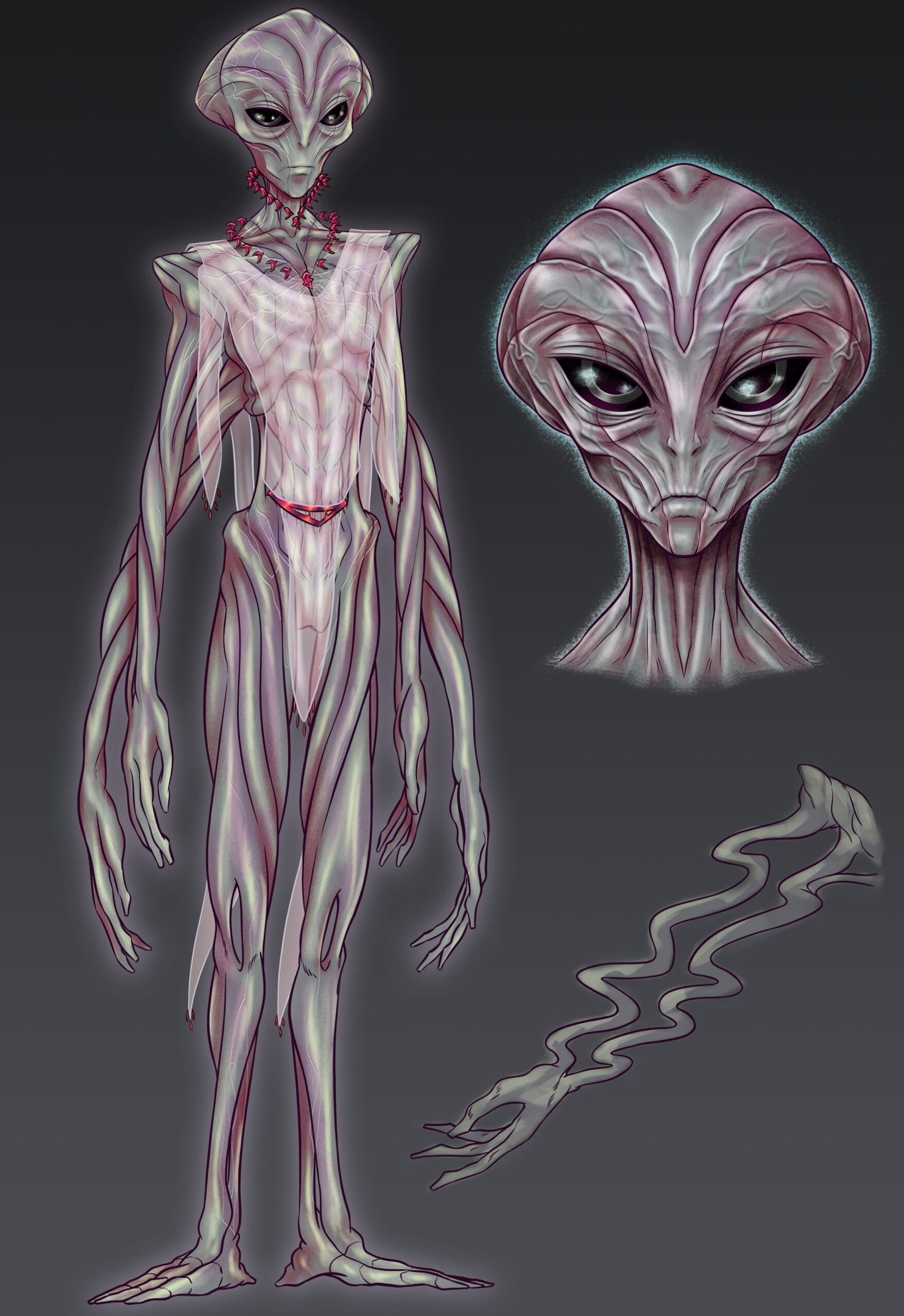 Standing five feet tall with semi-translucent, bioluminescent skin, Aetherians possess four arms ending in fingers that can extend fifty percent beyond normal length. Their bodies are marvels of atmospheric adaptation: honeycomb bones for buoyancy, aerogel-like tissue that is ninety-nine percent gas-filled, and the ability to absorb nutrients directly from atmospheric gases.