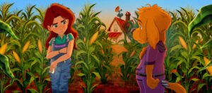 The cornfield scenes are hauntingly beautiful. The character expressions carry the weight of the narrative. The color palettes—dramatic sunsets over dying crops, the warmth of connection against the cold of space—enhance every emotional beat.